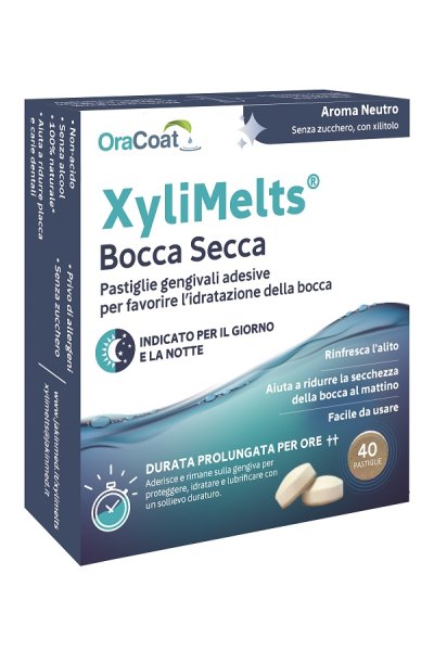 Pastiglia adesiva dall'aroma neutro completamente naturale che si scioglie lentamente in bocca e rilascia 500-550 mg di xilitolo e lubrificante orale.