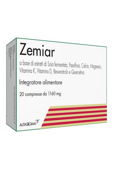 Integratore alimentare a base di estratti di soia fermentata, passiflora, calcio, magnesio, vitamina K, vitamina D, resveratrolo e quercetina.
