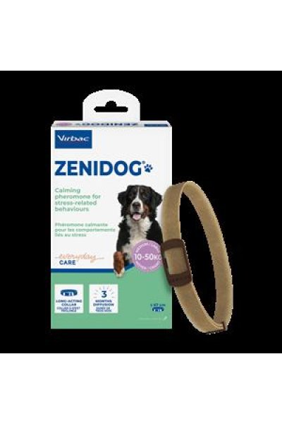 Il collare Zenidog contiene gli analoghi dei feromoni appaganti del cane (DAP), rilasciati dalle madri durante l'allattamento.