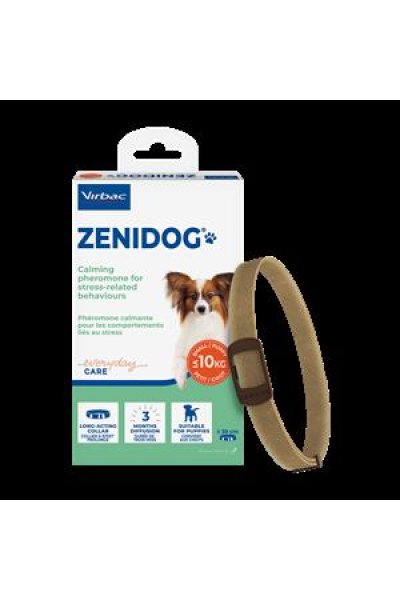 Il collare Zenidog contiene gli analoghi dei feromoni appaganti del cane (DAP), rilasciati dalle madri durante l'allattamento. La tecnologia a rilascio continuo diffonde questi segnali familiari per 3 MESI e aiuta il cane a sentirsi rassicurato, a proprio agio e meno spaventato in situazioni che causano stress. Se indossato regolarmente, riduce la reazione ai consueti fattori che causano stress fino all'89%.