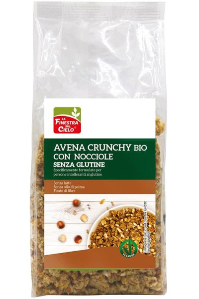 Muesli croccante con Avena biologica con Nocciole, specificatamente formulato per persone intolleranti al glutine.