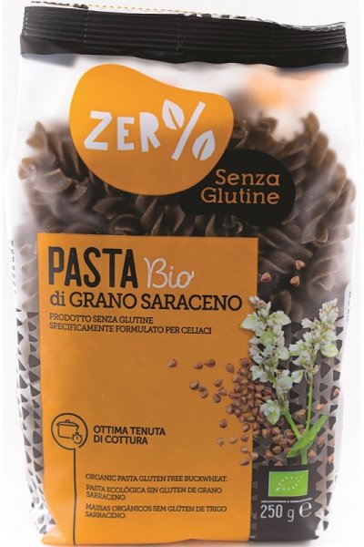 Pasta di grano saraceno, formato fusilli senza glutine da agricoltura biologica.Ingredienti
