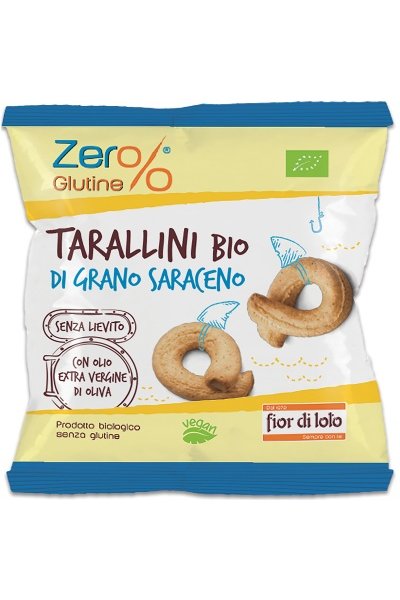 Croccanti tarallini a base di grano saraceno con olio extra vergine di oliva. Prodotto biologico senza glutine.