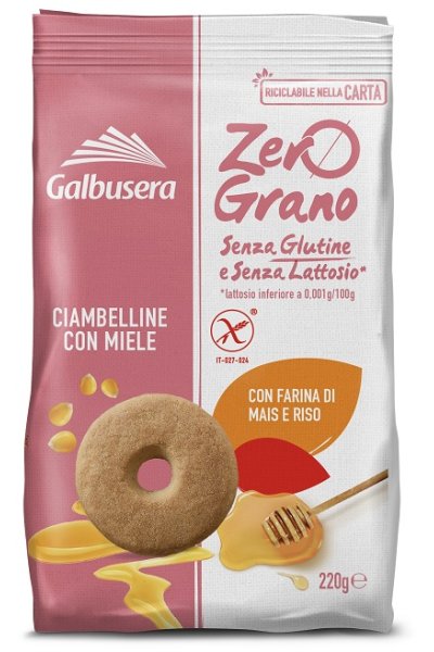 Farina di mais 25%, farina di riso 25%, zucchero, olio di girasole alto oleico, fecola di patate, burro senza lattosio, amido di mais, uova fresche, miele 1,8%, agenti lievitanti (carbonato acido di sodio, carbonato acido di ammonio, acido tartarico, difosfato disodico), sale; emulsionante: lecitina di girasole; aromi.
