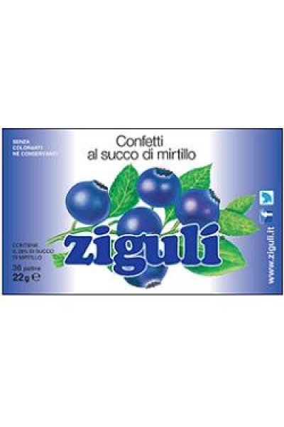 Destrosio; zucchero; succo di mirtillo 28% (da succo concentrato e disidratato); sciroppo di glucosio; addensante: gomma arabica; acidificante: acido citrico; antiagglomerante: magnesio stearato; aromi; agente di rivestimento: cera carnauba.