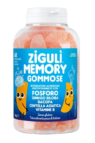 Fosfato di sodio; ginkgo biloba (Ginkgo biloba L.) foglie e.s. tit. 3% ginkgo flavon-glicosidi; bacopa [Bacopa monnieri (L.) wettst] erba intera e.s. 20% bacosidi; centella asiatica [Centella asiatica (L.) urb.] parte aerea e.s. tit. 20% derivati triterpenici (asiaticoside); niacina (nicotinamide); acido pantotenico (D-pantotenato, calcio); vitamina B2 (riboflavina); vitamina B1 (cloridrato di tiamina); vitamina B6 (cloroidrato di piridossina); vitamina B12 (cianocobalamina); sciroppo di glucosio; zucchero; acqua; gelatina alimentare; correttore di acidità: acido citrico; coloranti: patata dolce, cartamo e mela; aroma naturale arancia.