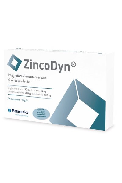 ZincoDyn è un integratore alimentare per adulti contenente zinco che contribuisce al mantenimento di unghie, capelli, pelle e ossa normali. ZincoDyn contribuisce al normale funzionamento della tiroide. Lo zinco concorre alla normale funzione cognitiva e alle normali fertilità e funzione riproduttiva. Inoltre, lo zinco contribuisce alla funzione fisiologica del sistema immunitario e alla protezione delle cellule dallo stress ossidativo. La fonte di zinco utilizzata è il bisglicinato di zinco, una forma chelata. Questa forma è ben assorbita dall’organismo. ZincoDyn contiene anche il selenio per un’azione sinergica dei due micronutrienti. Il selenio viene fornito in forma organica come L- selenometionina per garantire una biodisponibilità ottimale.