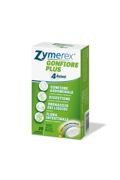 Zymerex gongiore + 4 azioni è un integratore alimentare con prebiotici e probiotici ed estratti di carciofo, zenzero, meliloto, coriandolo e genziana che agiscono su: